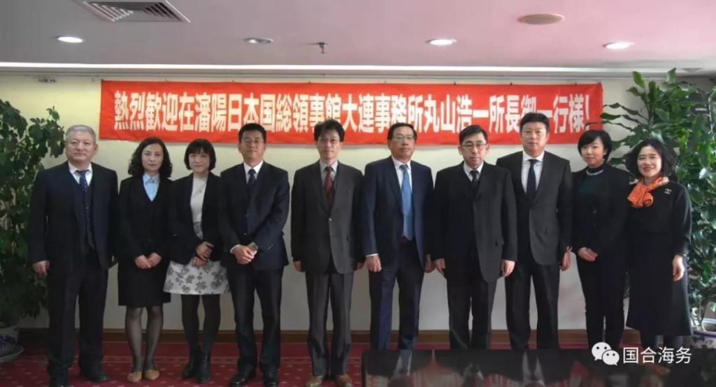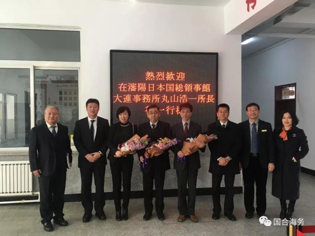 日本国驻沈阳总领事馆常驻大连领事事务所丸山浩一所长一行访问我公司 2020-09-04 2044 2019年2月28日,日本驻沈阳领馆大连事务所丸山浩一所长、大熊雅昭副所长一行四人访问我公司。我集团公司董事长朱明义会见了丸山浩一所长一行。集团公司相关负责人参加了会面。海务公司总经理高毅对领事们的来访表示热烈欢迎,并介绍了我公司历史沿革、与日本技能实习生各监理团体的合作交流情况以及中国赴日本国技能实习生的相关情况。丸山浩一所长参观我司为技能实习生创办的”幸福驿站”,并高度赞扬“”幸福驿站“”为促进技能实习生之间的沟通与交流发挥了重要的作用。丸山浩一所长一行参观了我司创办的大连国合出国人员培训学校,在吴剑校长的陪同下与师生进行了亲切的交谈,并鼓励在校学生努力学好日语。